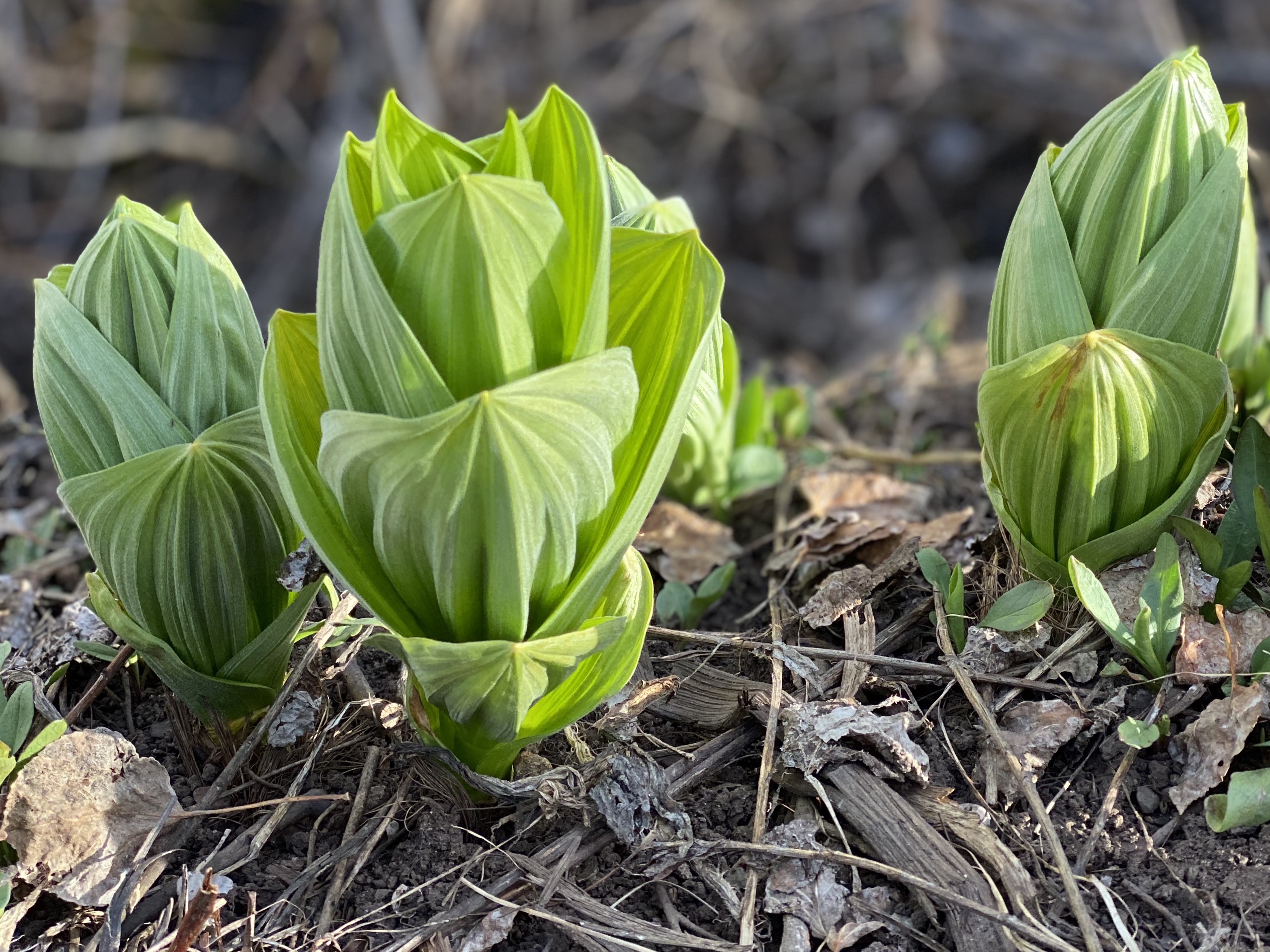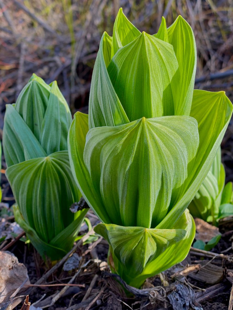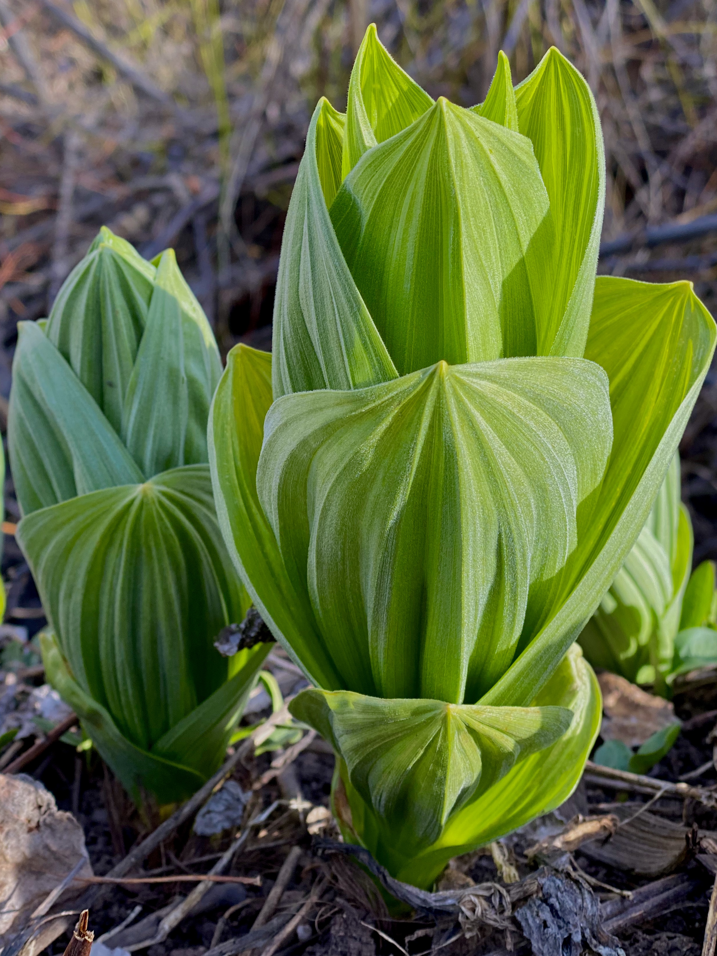During a walk along Brush Creek in Snowmass a few days ago, it was great to see corn lilies (Veratrum californicum) punching up through the winter debris of packed leaves. I love every season in the mountains, but spring is special as plants surging upward brighten the landscape! Corn lilies spread through their roots and do not depend on seeds to reproduce, often forming masses in moist open meadows. Although formerly in the Lily (Liliaceae) Family, they are now considered to be in the False Hellebore (Melanthiaceae) Family due to genetic studies. You can check out more info on this fascinating plant at Al Schneider’s terrific website, Southwest Colorado Wildflowers, Southwest Colorado Wildflowers, or in Wild at Heart on page 133.